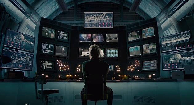 This shot below is one of the first things we see in the trailer. With a voice over by Michael Douglas, we see his character, Hank Pym, monitoring many screens. He says he has been watching Lang for a while and it appears he is watching his arrest on a few of the screens. The side screens and the topmost screen are incredibly interesting. A few have speculated that these could be Pym Particles and does seem plausible.