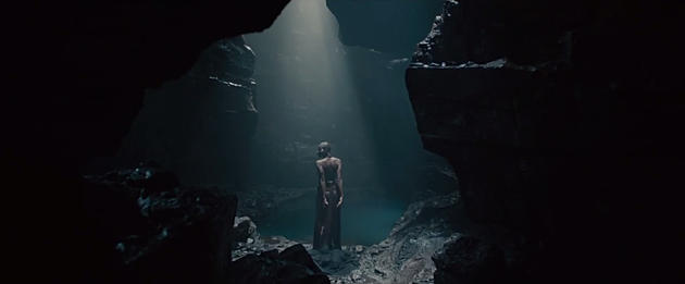 This image is one of the most interesting shots of the trailer. It features a mysterious bald black woman. The location seems to be similar to a shot in the first trailer of an angry Thor in water surrounded by rocks. Could she be the one to leave Thor there and what would she do to make him so mad?