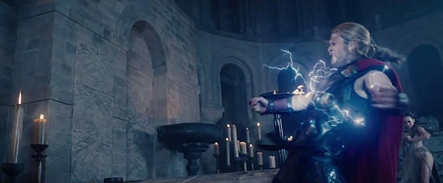 Here, Thor appears to be channeling his electrical powers through his chest and eventually blast it out of his chest. It is a new move for Thor to use in battle. Also, the walls appear similar to the ones in the image of Black Widow early on.